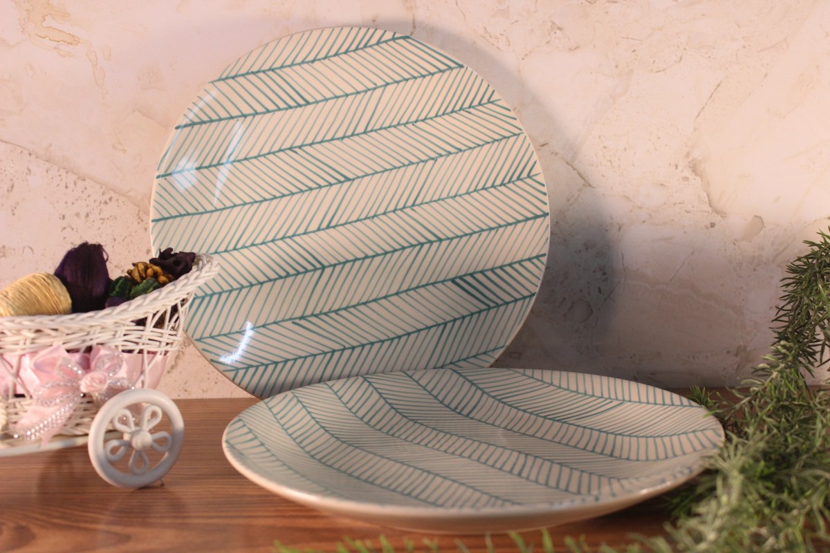BREEZY- Set of 2 Ceramic Green and White Dinner Plates