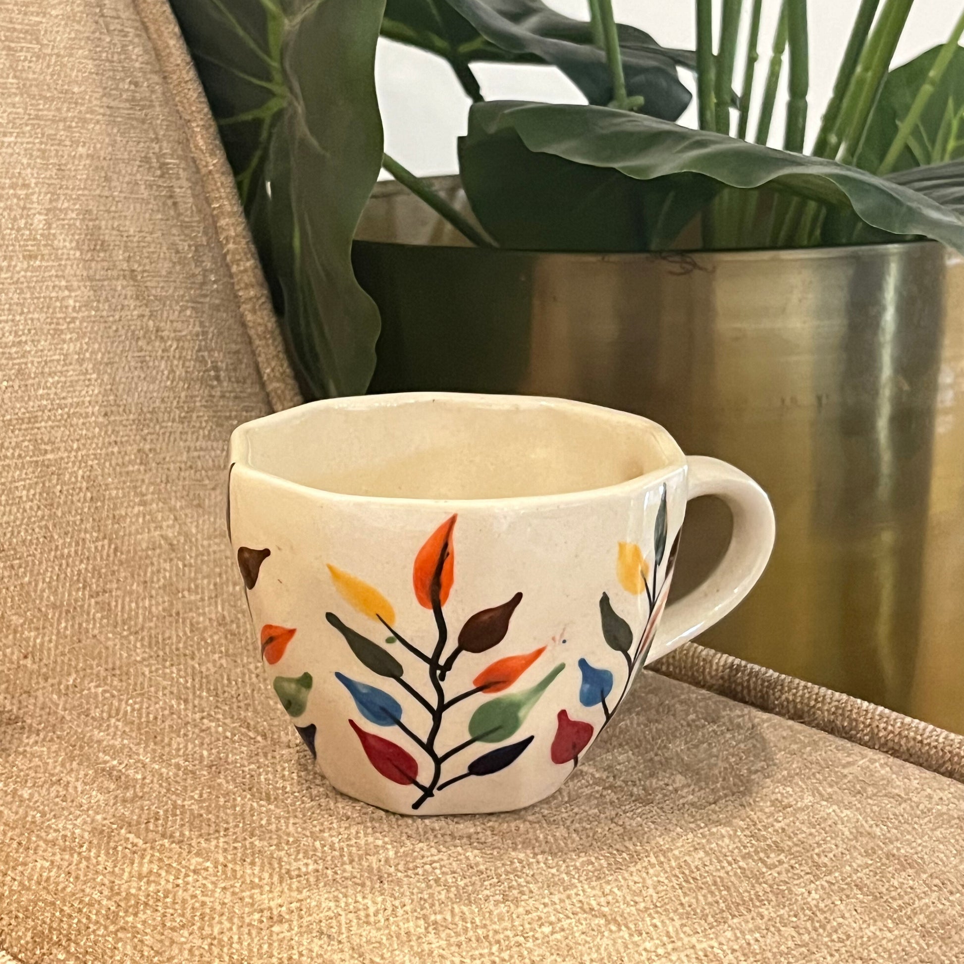 Experience the beauty of nature with our Colorful Dream- Ceramic Multi Leaves Mug. Each mug features a unique hand-painted design of multi-colored leaves, adding a touch of elegance to your daily coffee or tea routine. With pintersty technology, these mugs are not only beautiful but durable as well. Elevate your drinking experience with our one-of-a-kind mugs.