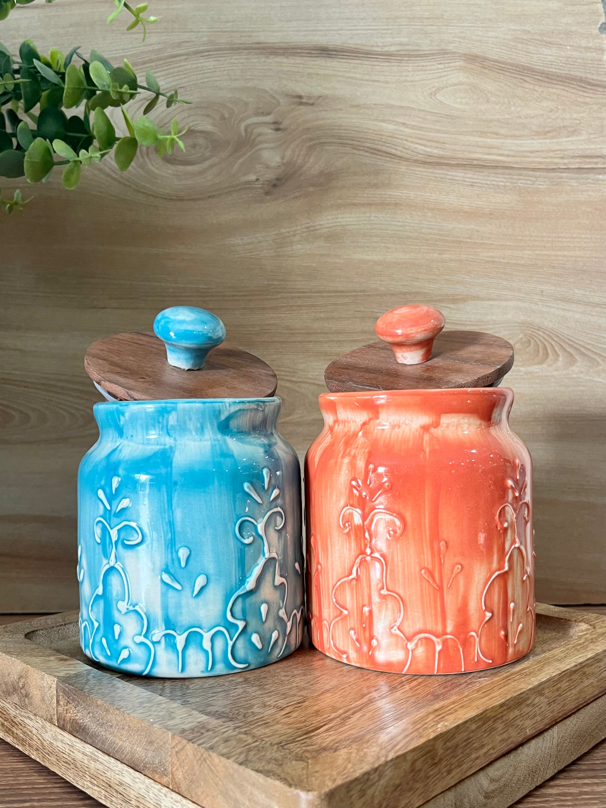 Ceramic Storage JAR SET OF 2 ORANGE BLUE