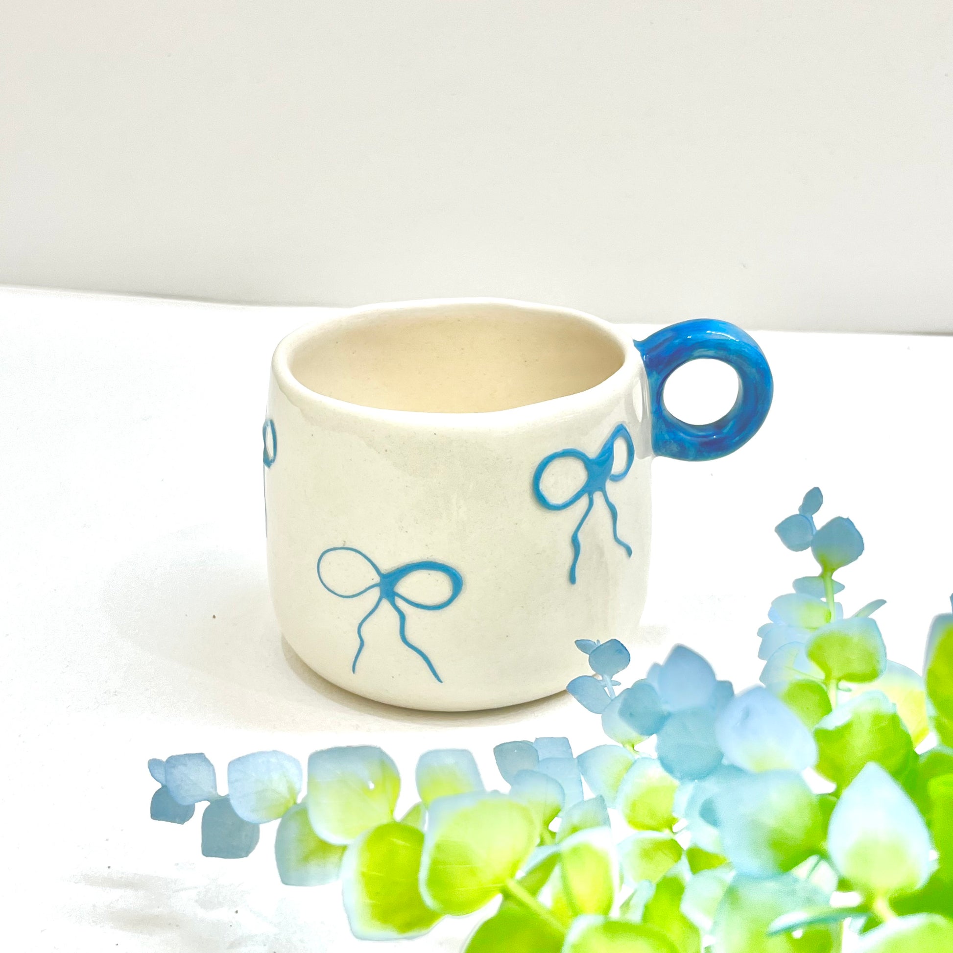Add a touch of elegance to your morning routine with our Ceramic Embossed Bow Mug. Handmade with a unique blue bow design, this mug is perfect for any Pinterest-worthy kitchen. Crafted with high-quality ceramic, it's both functional and aesthetically pleasing. Start your day in style with this one-of-a-kind mug.