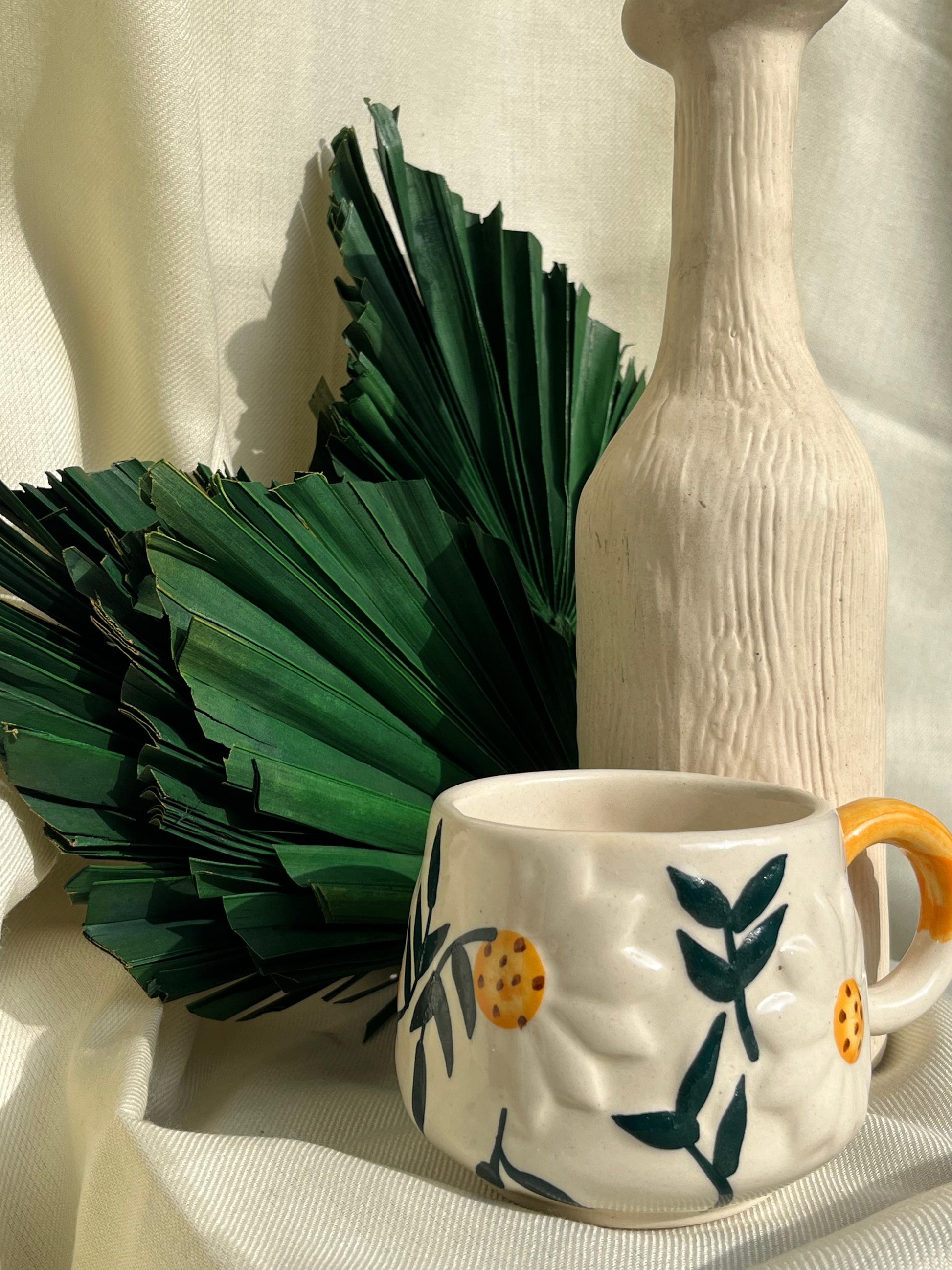 This handcrafted ceramic mug features a vibrant 3D sunflower painting, adding a unique touch to your daily coffee or tea routine. Made with expert precision, this mug is a one-of-a-kind piece that is sure to brighten your mood with every sip.