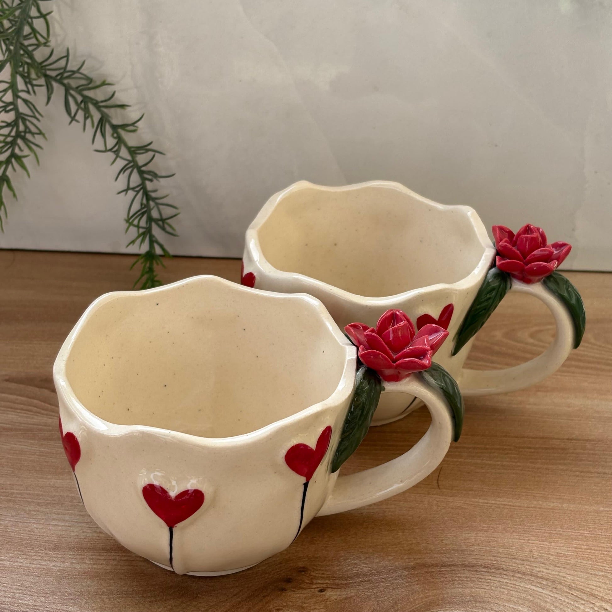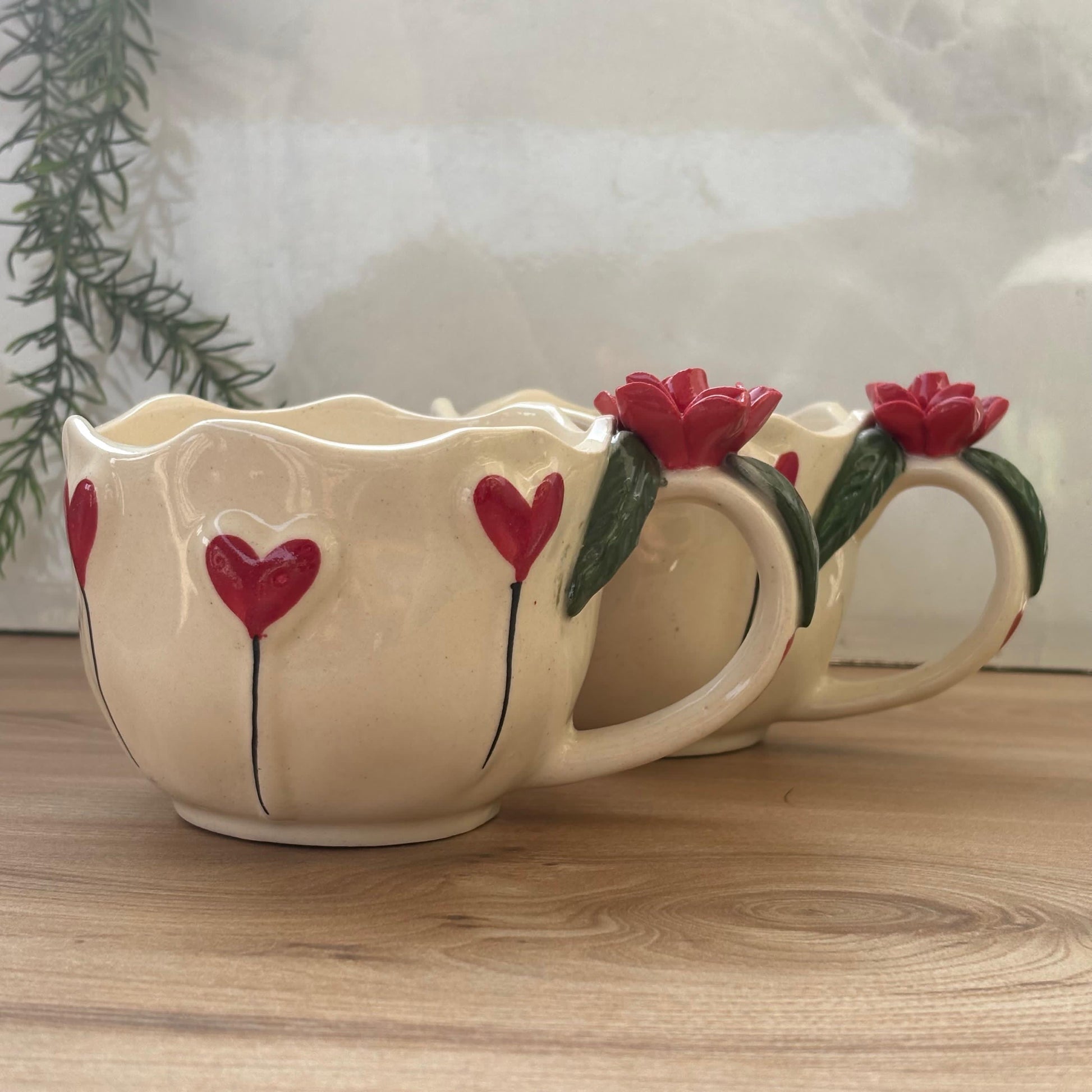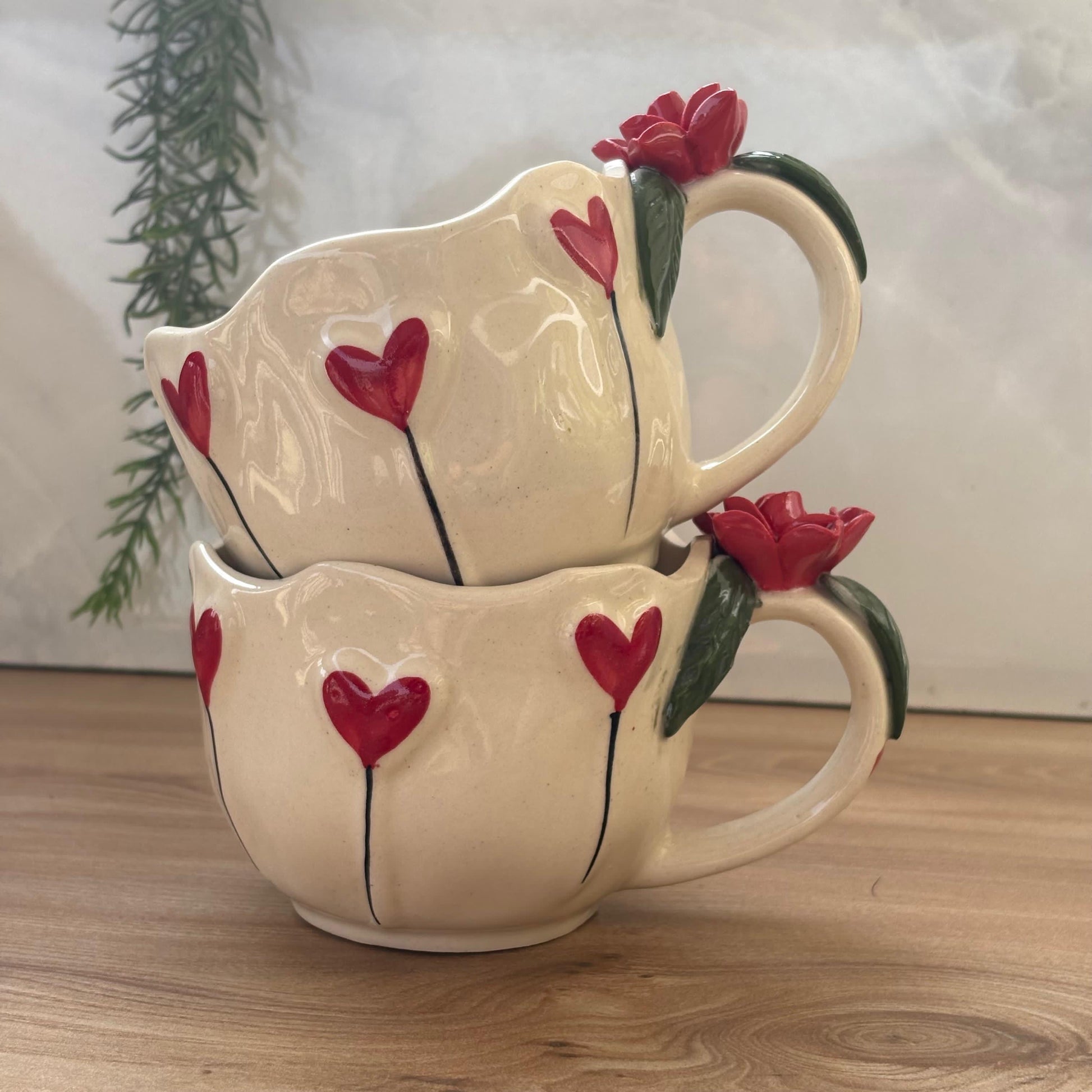 Handmade Floral Ceramic Mug – Heart & Flower Design