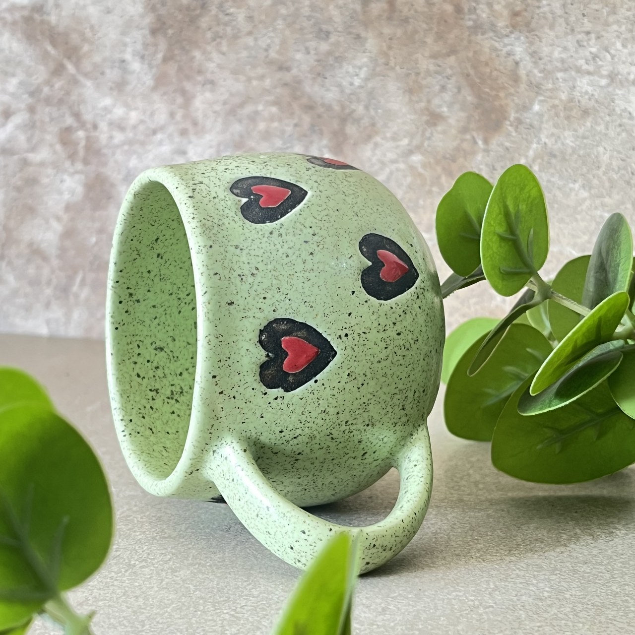 These handmade green mugs with a heart design are both stylish and unique, making them the perfect addition to any kitchen. Each mug is crafted with care, ensuring quality and aesthetic appeal. Impress your guests or enjoy your daily cup of coffee with these one-of-a-kind mugs.