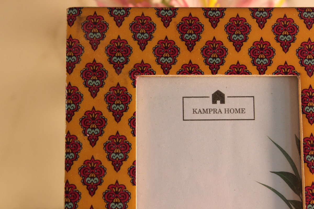 Elevate your home decor with our beautifully crafted photo frame made from a unique combination of wood and resin. This funky and colorful photo frame is perfect for displaying your favorite memories in style. Each frame is handmade by skilled artisans, making each piece one-of-a-kind. The intricate detailing and vibrant colors of the resin make it a statement piece on any mantel or shelf. Add a touch of creativity to your home with this stunning and eye-catching photo frame.