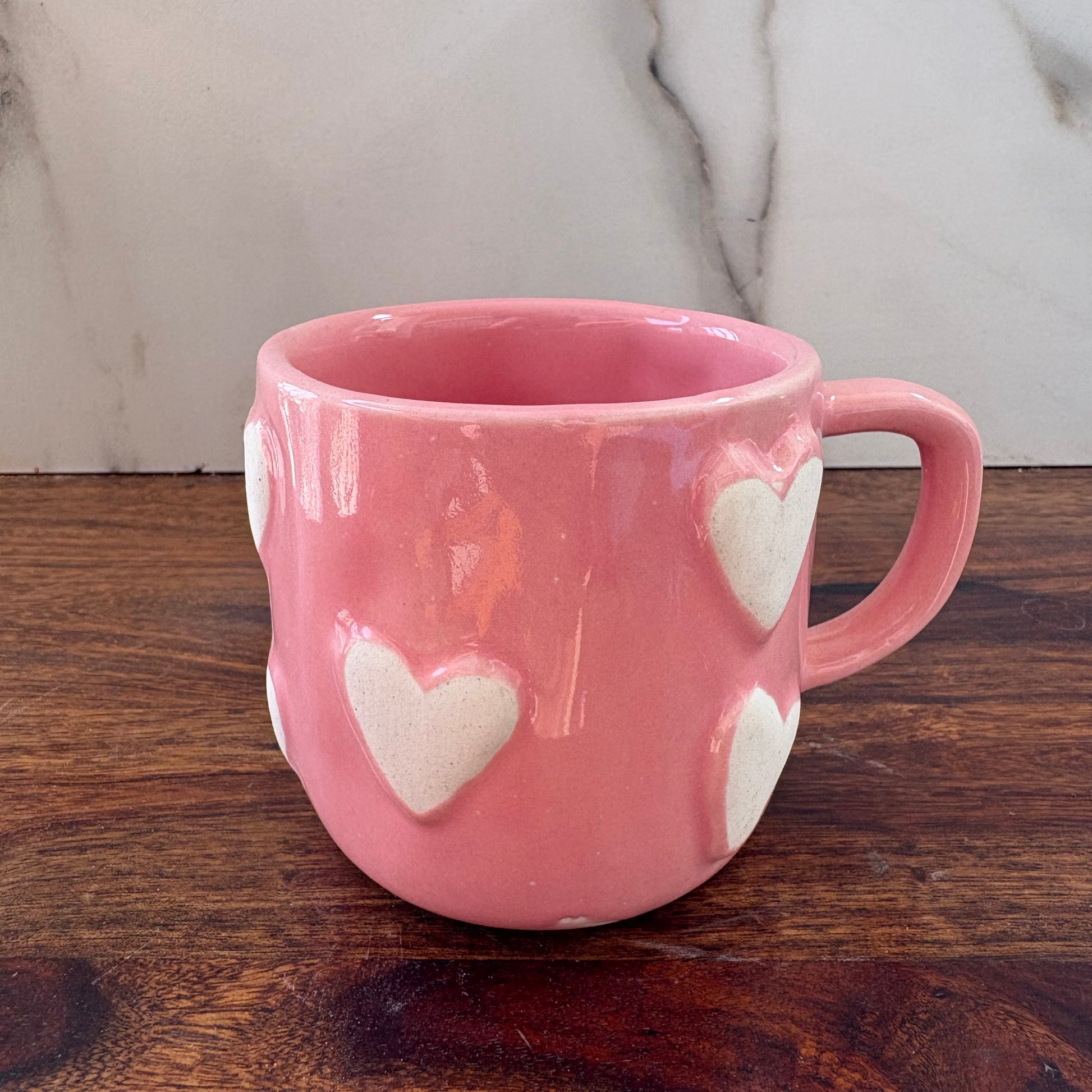 This adorable handmade pink ceramic mug features charming white heart details, making it a perfect gift for your loved one—or yourself! Each piece is lovingly handcrafted by skilled Indian artisans, adding a personal and rustic touch to your coffee or tea ritual. Its romantic and playful design makes it ideal for Valentine’s Day, anniversaries, birthdays, or cozy mornings all year round.