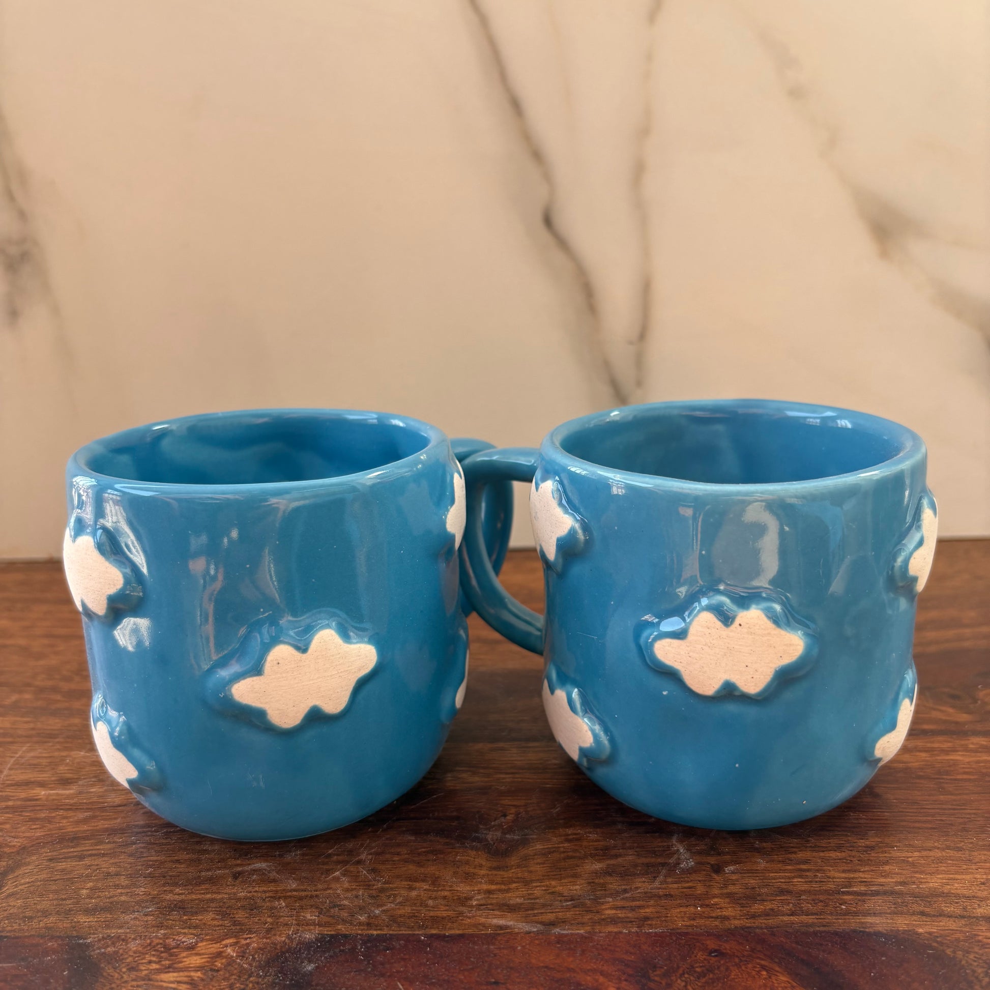 Bring a little piece of the sky to your morning routine with this handmade blue ceramic mug featuring adorable white cloud accents. Lovingly crafted by skilled Indian artisans, this whimsical coffee cup blends charm with functionality. Its sturdy build and smooth glazed finish make it perfect for your daily brew – whether it’s coffee, tea, or hot chocolate.