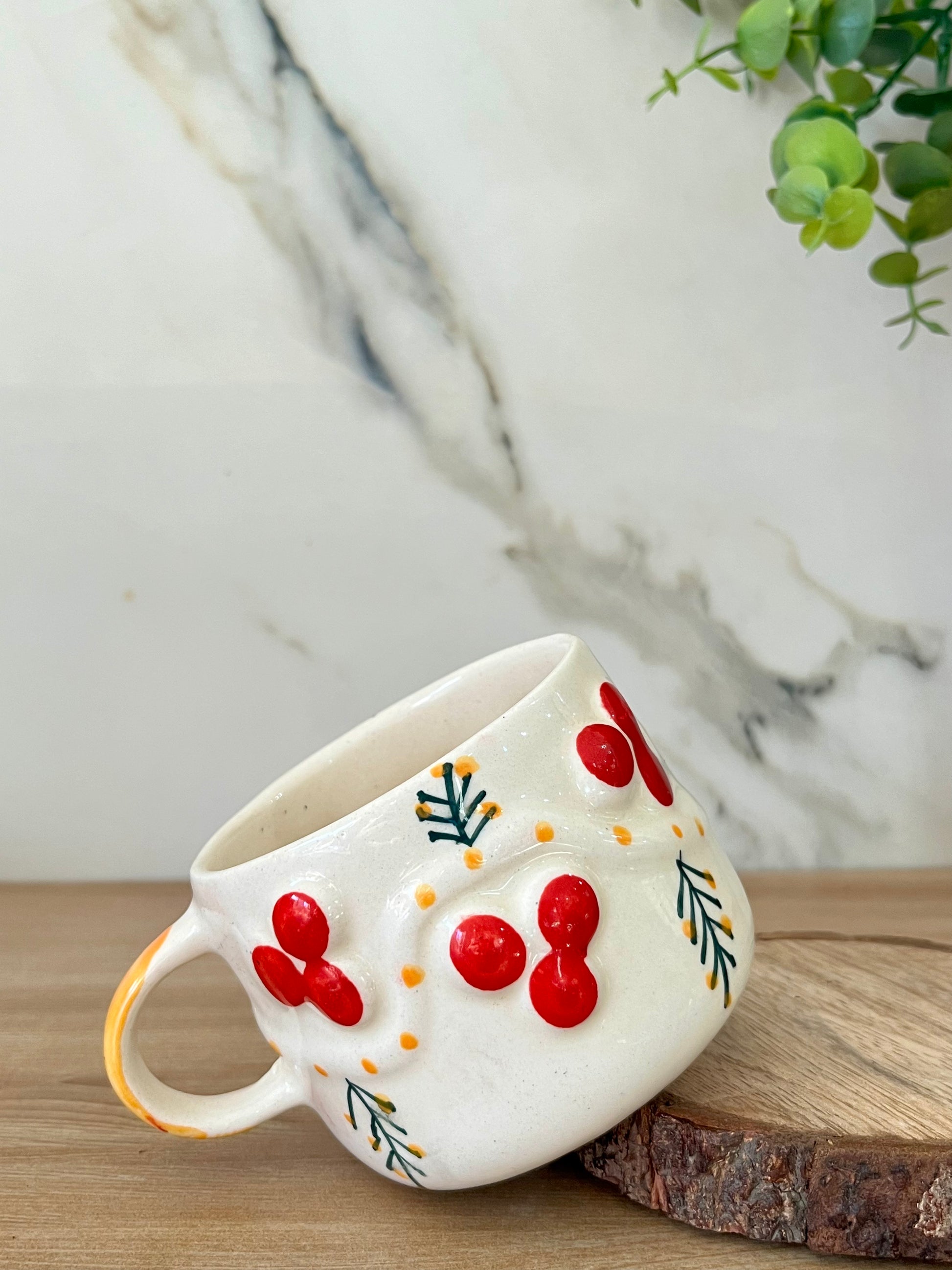 Add a pop of color to your kitchenware collection with our Cherry Tea/Coffee Mug. The chic design features a vibrant cherry pattern, making it both aesthetically pleasing and Pinterest-worthy. Sip your favorite beverage in style and elevate your morning routine with this unique mug.