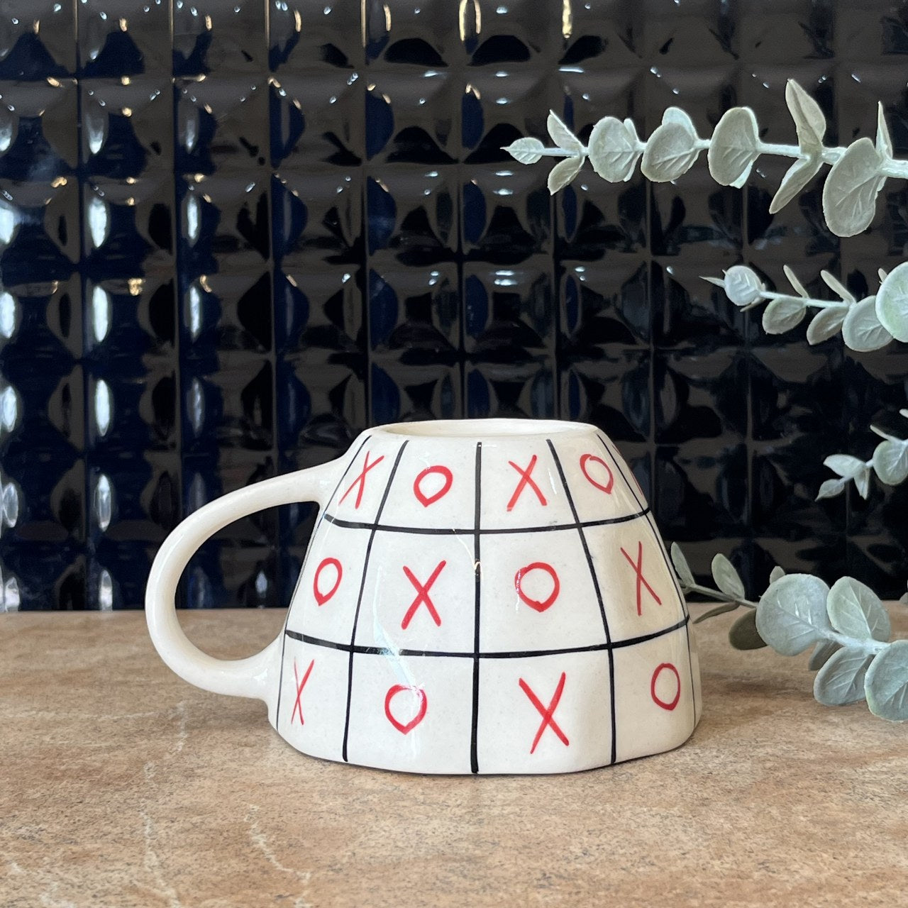 Enhance your coffee experience with ZERO KAANTA's ceramic mugs. Each mug is handpainted with a unique tic tac toe design, adding a touch of sophistication to your daily routine. Made with high-quality ceramic, these mugs are both durable and stylish. Elevate your morning brew today!